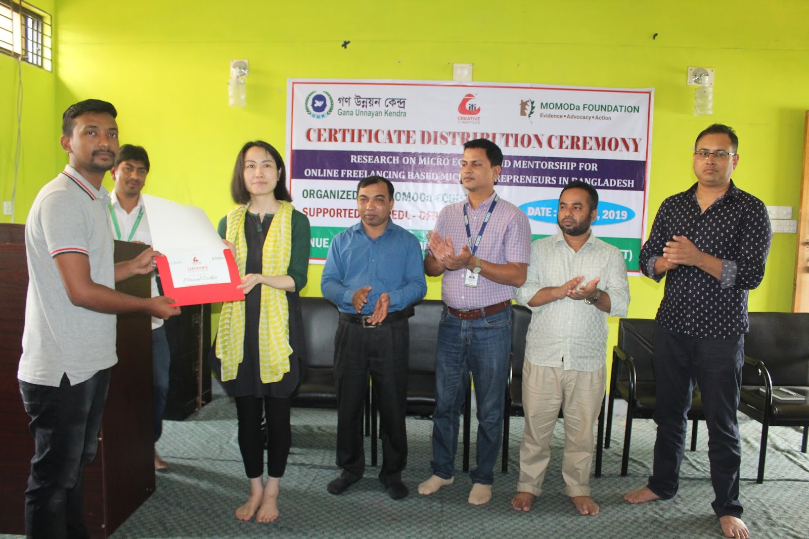 The training program is being conducted by Creative IT, which is a leader in providing IT training in Bangladesh, with a specific focus on developing young individuals to become online freelancers. The premises for the training program was provided by Gana Unnayan Kendra, one of the largest NGOs operating in northern Bangladesh.